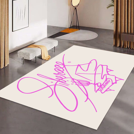 Liberace Piano Signature Logo Area Plush Rug in pink