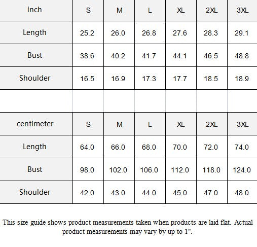 | centimeter | S | M | L | XL | 2XL | 3XL |