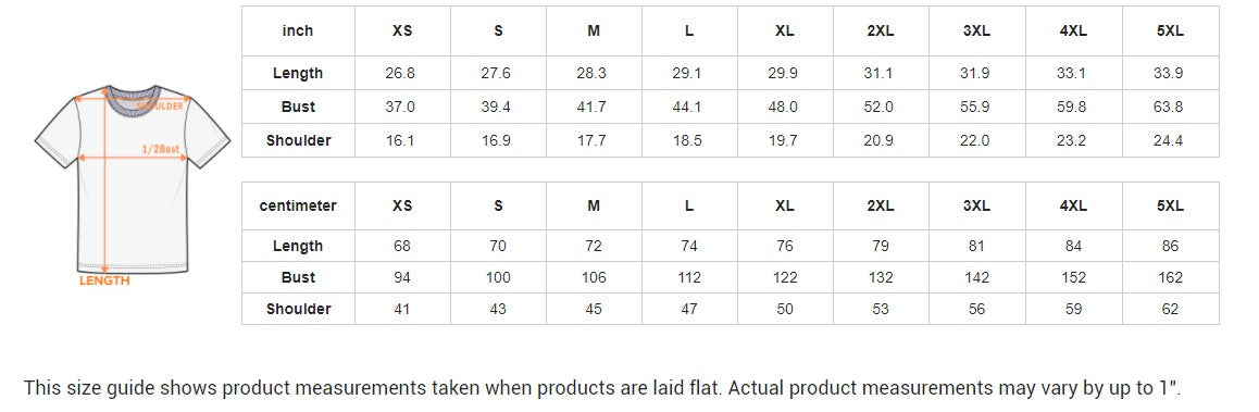 | inch | XS | S | M | L | XL | 2XL | 3XL | 4XL | 5XL |