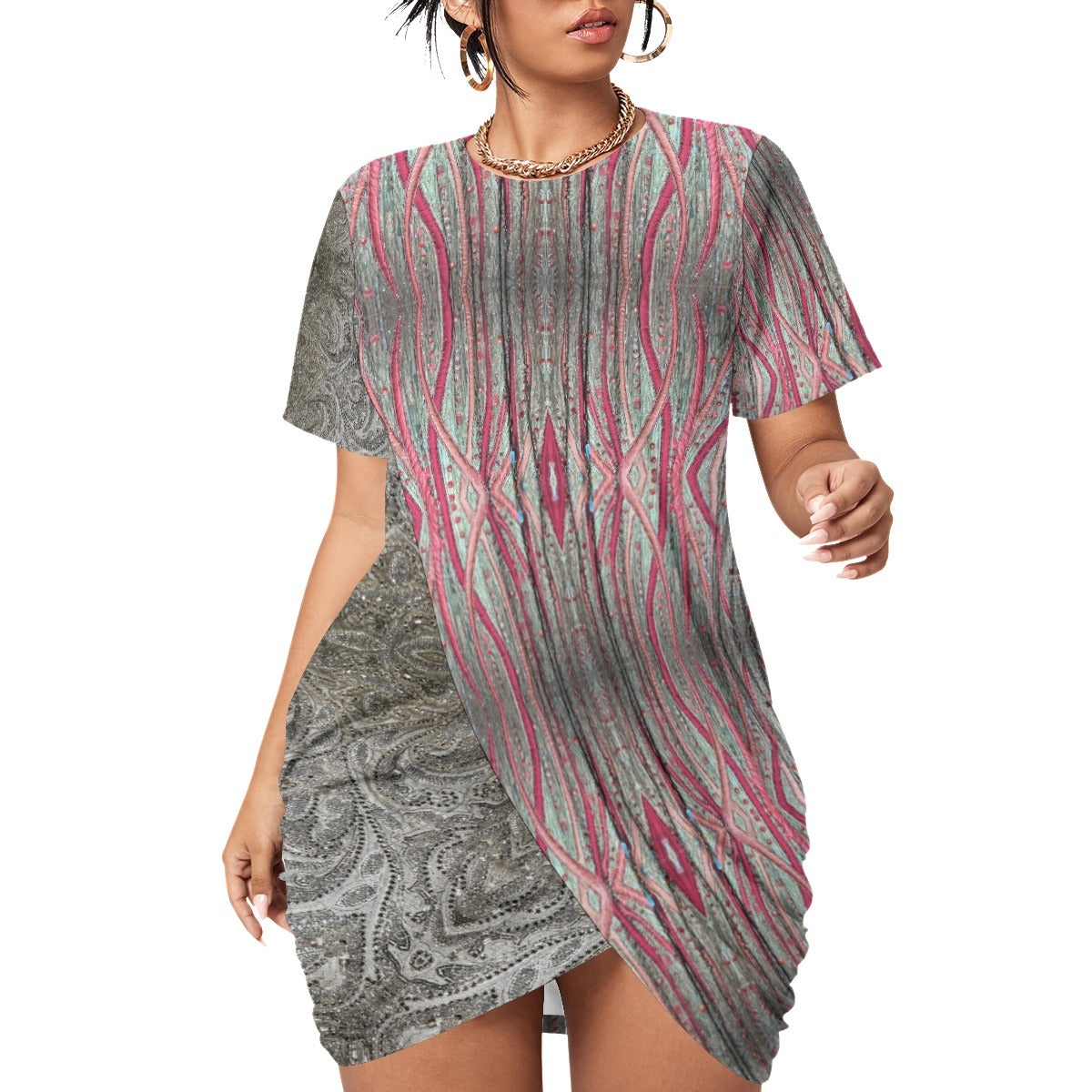 Liberace's famous Suit of Ice costume cape by Michael Travis, and his 1957 Frank Ortiz lighted jacket, are the printed patterns making up this classic round neck, the hem is stacked design, often worn directly with leggings or jeans.
