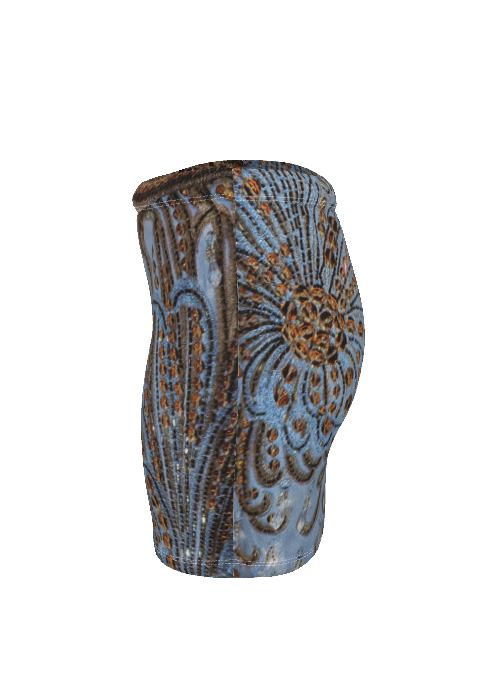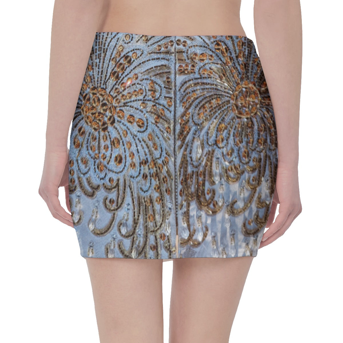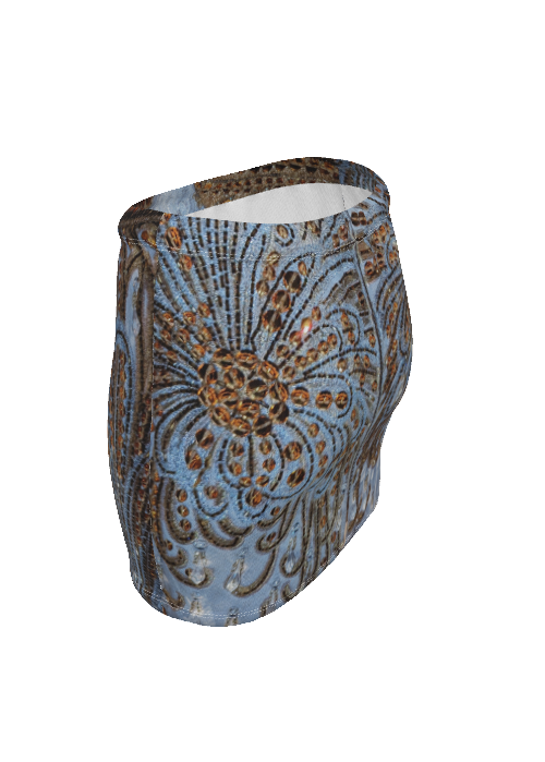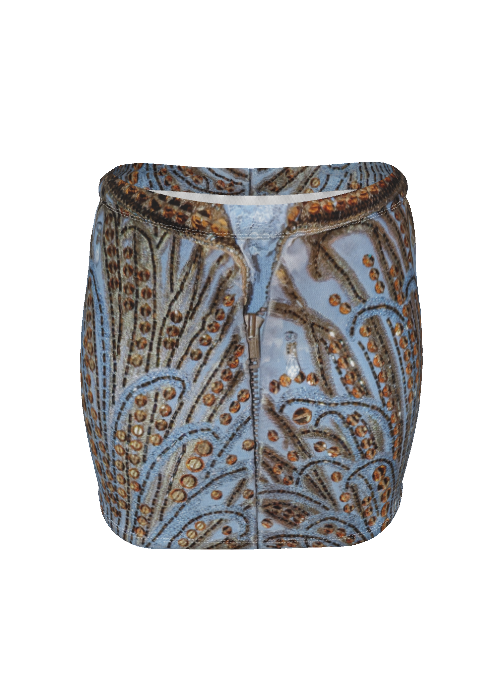 Wrap yourself in a copyrighted photo of Liberace's 1968 beaded fuji-mam jacket by Frank Acuna. The slightly unzipped top is printed from an actual wearing, making the skirt appear slightly unzipped.