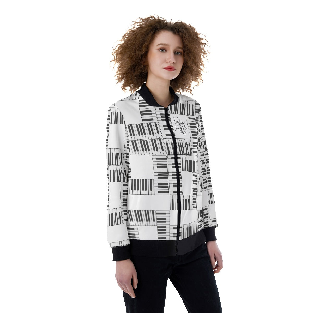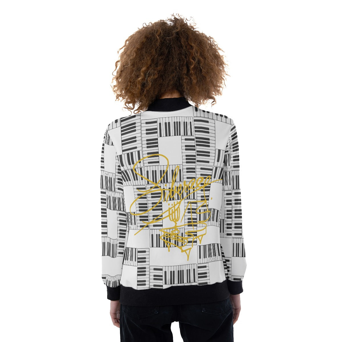 Printed all over with piano keys, there are also Liberace Piano Signature Logos on the front and in large gold print on the back. The jacket with ribbed stand-up collar, elastic cuffs and elasticized hem is casual slim fit. Extra thick and durable, suitable for any outdoor activity.