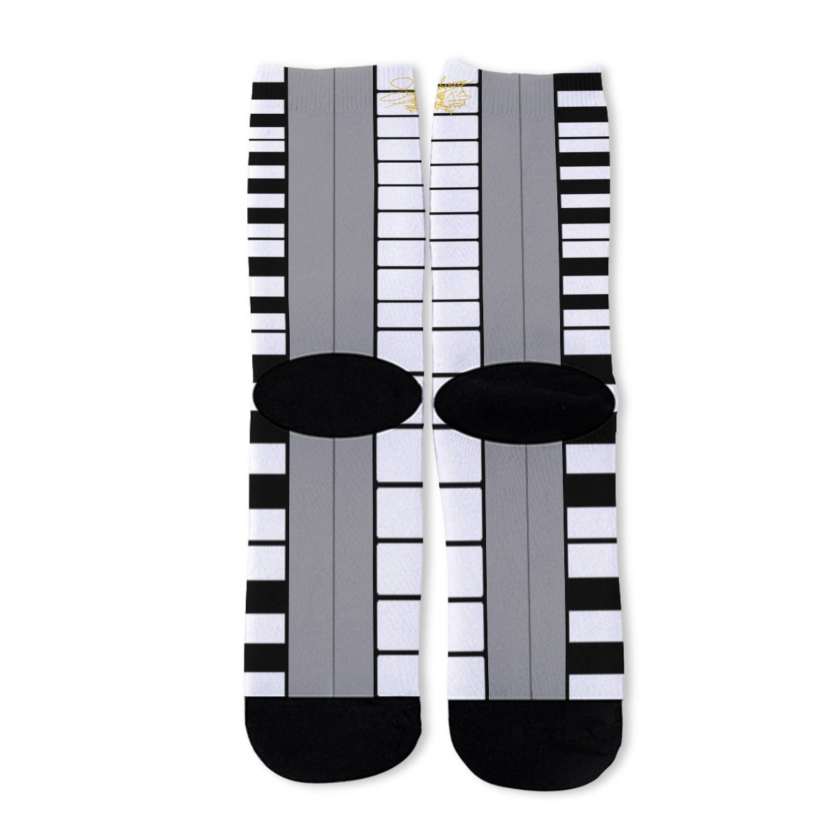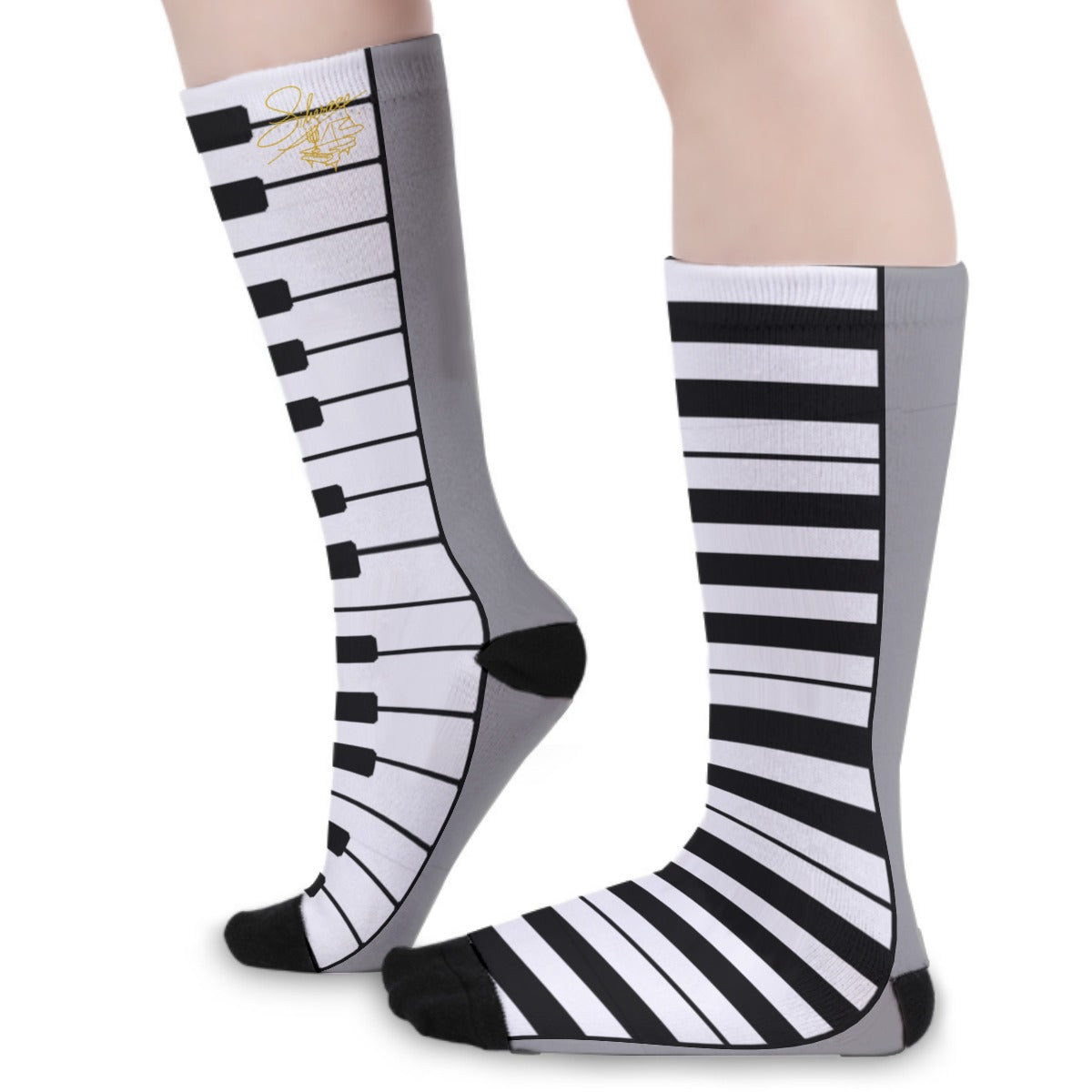 Piano key pattern with the golden Liberace Piano Siganature logo on the inner calf.