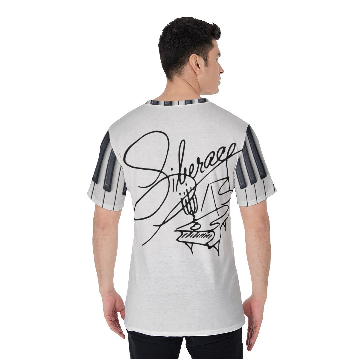SLEEVES AND COLLAR: Piano keys print, naturally.